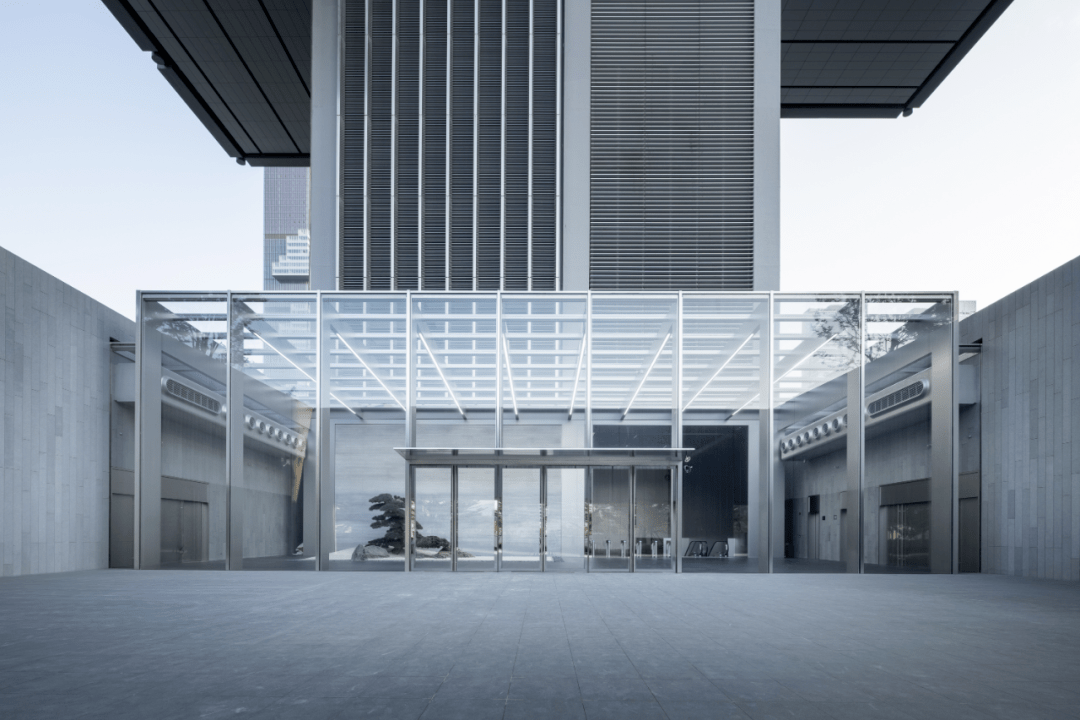 从裙楼底部走进半开放的「庭院空间」,这里成为城市与办公大楼的空间过渡。