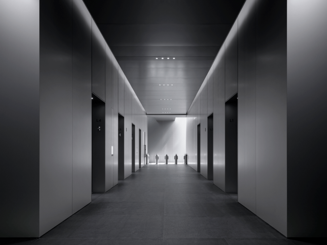 东西双塔的两个大堂采用相同的设计,平面布局为镜像布置,统一的视觉效果却不会有任何方向感的缺失。