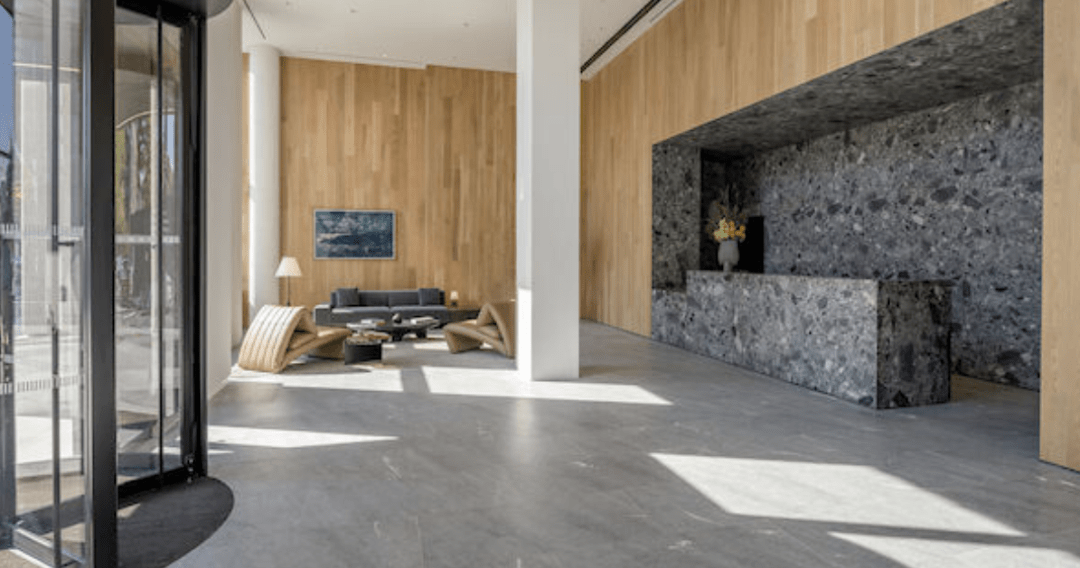 室内是一个摩登现代的空间,整个楼梯内包含了住房,咖啡厅,健身房,公共休息区等一系列配套。